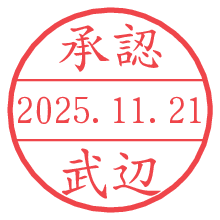 オプションの「電子透かし」をチェックし[生成]すると、見た目には分からないように、UNIXタイムスタンプを識別情報としてPNG形式の日付印に埋め込みます。 日付スタンプメーカーの使い方「部署」「名前」は最大8文字まで入力が可能です。「スタンプの色」を選択し、[生成]ボタン押下で印影画像が更新され、背景を透明に設定したPNG形式とPDF形式の印影画像がリンクからダウンロードできます。 オプションの「電子透かし」は、その性格上日付印ととても相性の良い付加サービスです。 別ページの「タイムスタンプと電子透かし」でも詳しく解説しますが、このオプションを追加することで、日付印が生成された日時に確かにその印が存在していることが証明されます。 ![]() 武辺さんの電子印鑑が作れます。社内でのデータ書類閲覧確認用など、認印的な使い方のできる電子印鑑が作れます。 ![]() 古代文字で落款印が作れます。「落款スタンプメーカー」で作品を引き立たせる落款印が作れます。