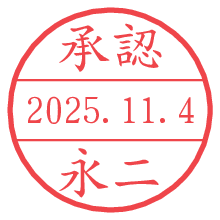 オプションの「電子透かし」をチェックし[生成]すると、見た目には分からないように、UNIXタイムスタンプを識別情報としてPNG形式の日付印に埋め込みます。 日付スタンプメーカーの使い方「部署」「名前」は最大8文字まで入力が可能です。「スタンプの色」を選択し、[生成]ボタン押下で印影画像が更新され、背景を透明に設定したPNG形式とPDF形式の印影画像がリンクからダウンロードできます。 オプションの「電子透かし」は、その性格上日付印ととても相性の良い付加サービスです。 別ページの「電子透かしとタイムスタンプ」でも詳しく解説しますが、このオプションを追加することで、日付印が生成された日時に確かにその印が存在していることが証明されます。 ![]()  永二さんの電子印鑑が作れます。社内でのデータ書類閲覧確認用など、認印的な使い方のできる電子印鑑が作れます。 ![]()  古代文字で落款印が作れます。「落款スタンプメーカー」で作品を引き立たせる落款印が作れます。