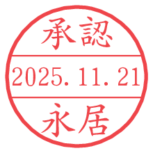 オプションの「電子透かし」をチェックし[生成]すると、見た目には分からないように、UNIXタイムスタンプを識別情報としてPNG形式の日付印に埋め込みます。 日付スタンプメーカーの使い方「部署」「名前」は最大8文字まで入力が可能です。「スタンプの色」を選択し、[生成]ボタン押下で印影画像が更新され、背景を透明に設定したPNG形式とPDF形式の印影画像がリンクからダウンロードできます。 オプションの「電子透かし」は、その性格上日付印ととても相性の良い付加サービスです。 別ページの「タイムスタンプと電子透かし」でも詳しく解説しますが、このオプションを追加することで、日付印が生成された日時に確かにその印が存在していることが証明されます。 ![]() 永居さんの電子印鑑が作れます。社内でのデータ書類閲覧確認用など、認印的な使い方のできる電子印鑑が作れます。 ![]() 古代文字で落款印が作れます。「落款スタンプメーカー」で作品を引き立たせる落款印が作れます。