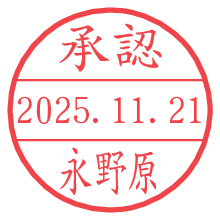 オプションの「電子透かし」をチェックし[生成]すると、見た目には分からないように、UNIXタイムスタンプを識別情報としてPNG形式の日付印に埋め込みます。 日付スタンプメーカーの使い方「部署」「名前」は最大8文字まで入力が可能です。「スタンプの色」を選択し、[生成]ボタン押下で印影画像が更新され、背景を透明に設定したPNG形式とPDF形式の印影画像がリンクからダウンロードできます。 オプションの「電子透かし」は、その性格上日付印ととても相性の良い付加サービスです。 別ページの「タイムスタンプと電子透かし」でも詳しく解説しますが、このオプションを追加することで、日付印が生成された日時に確かにその印が存在していることが証明されます。 ![]() 永野原さんの電子印鑑が作れます。社内でのデータ書類閲覧確認用など、認印的な使い方のできる電子印鑑が作れます。 ![]() 古代文字で落款印が作れます。「落款スタンプメーカー」で作品を引き立たせる落款印が作れます。