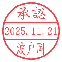 オプションの「電子透かし」をチェックし[生成]すると、見た目には分からないように、UNIXタイムスタンプを識別情報としてPNG形式の日付印に埋め込みます。 日付スタンプメーカーの使い方「部署」「名前」は最大8文字まで入力が可能です。「スタンプの色」を選択し、[生成]ボタン押下で印影画像が更新され、背景を透明に設定したPNG形式とPDF形式の印影画像がリンクからダウンロードできます。 オプションの「電子透かし」は、その性格上日付印ととても相性の良い付加サービスです。 別ページの「タイムスタンプと電子透かし」でも詳しく解説しますが、このオプションを追加することで、日付印が生成された日時に確かにその印が存在していることが証明されます。 ![]() 波戸岡さんの電子印鑑が作れます。社内でのデータ書類閲覧確認用など、認印的な使い方のできる電子印鑑が作れます。 ![]() 古代文字で落款印が作れます。「落款スタンプメーカー」で作品を引き立たせる落款印が作れます。