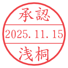 オプションの「電子透かし」をチェックし[生成]すると、見た目には分からないように、UNIXタイムスタンプを識別情報としてPNG形式の日付印に埋め込みます。 日付スタンプメーカーの使い方「部署」「名前」は最大8文字まで入力が可能です。「スタンプの色」を選択し、[生成]ボタン押下で印影画像が更新され、背景を透明に設定したPNG形式とPDF形式の印影画像がリンクからダウンロードできます。 オプションの「電子透かし」は、その性格上日付印ととても相性の良い付加サービスです。 別ページの「タイムスタンプと電子透かし」でも詳しく解説しますが、このオプションを追加することで、日付印が生成された日時に確かにその印が存在していることが証明されます。 ![]() 浅桐さんの電子印鑑が作れます。社内でのデータ書類閲覧確認用など、認印的な使い方のできる電子印鑑が作れます。 ![]() 古代文字で落款印が作れます。「落款スタンプメーカー」で作品を引き立たせる落款印が作れます。