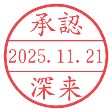 オプションの「電子透かし」をチェックし[生成]すると、見た目には分からないように、UNIXタイムスタンプを識別情報としてPNG形式の日付印に埋め込みます。 日付スタンプメーカーの使い方「部署」「名前」は最大8文字まで入力が可能です。「スタンプの色」を選択し、[生成]ボタン押下で印影画像が更新され、背景を透明に設定したPNG形式とPDF形式の印影画像がリンクからダウンロードできます。 オプションの「電子透かし」は、その性格上日付印ととても相性の良い付加サービスです。 別ページの「タイムスタンプと電子透かし」でも詳しく解説しますが、このオプションを追加することで、日付印が生成された日時に確かにその印が存在していることが証明されます。 ![]() 深来さんの電子印鑑が作れます。社内でのデータ書類閲覧確認用など、認印的な使い方のできる電子印鑑が作れます。 ![]() 古代文字で落款印が作れます。「落款スタンプメーカー」で作品を引き立たせる落款印が作れます。