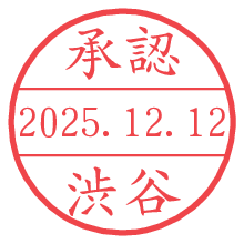オプションの「電子透かし」をチェックし[生成]すると、見た目には分からないように、UNIXタイムスタンプを識別情報としてPNG形式の日付印に埋め込みます。 日付スタンプメーカーの使い方「部署」「名前」は最大8文字まで入力が可能です。「スタンプの色」を選択し、[生成]ボタン押下で印影画像が更新され、背景を透明に設定したPNG形式とPDF形式の印影画像がリンクからダウンロードできます。 オプションの「電子透かし」は、その性格上日付印ととても相性の良い付加サービスです。 別ページの「タイムスタンプと電子透かし」でも詳しく解説しますが、このオプションを追加することで、日付印が生成された日時に確かにその印が存在していることが証明されます。 ![]() 渋谷さんの電子印鑑が作れます。社内でのデータ書類閲覧確認用など、認印的な使い方のできる電子印鑑が作れます。 ![]() 古代文字で落款印が作れます。「落款スタンプメーカー」で作品を引き立たせる落款印が作れます。