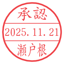 オプションの「電子透かし」をチェックし[生成]すると、見た目には分からないように、UNIXタイムスタンプを識別情報としてPNG形式の日付印に埋め込みます。 日付スタンプメーカーの使い方「部署」「名前」は最大8文字まで入力が可能です。「スタンプの色」を選択し、[生成]ボタン押下で印影画像が更新され、背景を透明に設定したPNG形式とPDF形式の印影画像がリンクからダウンロードできます。 オプションの「電子透かし」は、その性格上日付印ととても相性の良い付加サービスです。 別ページの「タイムスタンプと電子透かし」でも詳しく解説しますが、このオプションを追加することで、日付印が生成された日時に確かにその印が存在していることが証明されます。 ![]() 瀬戸根さんの電子印鑑が作れます。社内でのデータ書類閲覧確認用など、認印的な使い方のできる電子印鑑が作れます。 ![]() 古代文字で落款印が作れます。「落款スタンプメーカー」で作品を引き立たせる落款印が作れます。