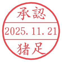 オプションの「電子透かし」をチェックし[生成]すると、見た目には分からないように、UNIXタイムスタンプを識別情報としてPNG形式の日付印に埋め込みます。 日付スタンプメーカーの使い方「部署」「名前」は最大8文字まで入力が可能です。「スタンプの色」を選択し、[生成]ボタン押下で印影画像が更新され、背景を透明に設定したPNG形式とPDF形式の印影画像がリンクからダウンロードできます。 オプションの「電子透かし」は、その性格上日付印ととても相性の良い付加サービスです。 別ページの「タイムスタンプと電子透かし」でも詳しく解説しますが、このオプションを追加することで、日付印が生成された日時に確かにその印が存在していることが証明されます。 ![]() 猪足さんの電子印鑑が作れます。社内でのデータ書類閲覧確認用など、認印的な使い方のできる電子印鑑が作れます。 ![]() 古代文字で落款印が作れます。「落款スタンプメーカー」で作品を引き立たせる落款印が作れます。