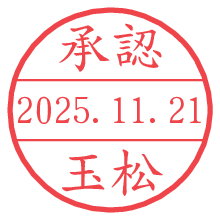 オプションの「電子透かし」をチェックし[生成]すると、見た目には分からないように、UNIXタイムスタンプを識別情報としてPNG形式の日付印に埋め込みます。 日付スタンプメーカーの使い方「部署」「名前」は最大8文字まで入力が可能です。「スタンプの色」を選択し、[生成]ボタン押下で印影画像が更新され、背景を透明に設定したPNG形式とPDF形式の印影画像がリンクからダウンロードできます。 オプションの「電子透かし」は、その性格上日付印ととても相性の良い付加サービスです。 別ページの「タイムスタンプと電子透かし」でも詳しく解説しますが、このオプションを追加することで、日付印が生成された日時に確かにその印が存在していることが証明されます。 ![]() 玉松さんの電子印鑑が作れます。社内でのデータ書類閲覧確認用など、認印的な使い方のできる電子印鑑が作れます。 ![]() 古代文字で落款印が作れます。「落款スタンプメーカー」で作品を引き立たせる落款印が作れます。
