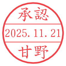 オプションの「電子透かし」をチェックし[生成]すると、見た目には分からないように、UNIXタイムスタンプを識別情報としてPNG形式の日付印に埋め込みます。 日付スタンプメーカーの使い方「部署」「名前」は最大8文字まで入力が可能です。「スタンプの色」を選択し、[生成]ボタン押下で印影画像が更新され、背景を透明に設定したPNG形式とPDF形式の印影画像がリンクからダウンロードできます。 オプションの「電子透かし」は、その性格上日付印ととても相性の良い付加サービスです。 別ページの「タイムスタンプと電子透かし」でも詳しく解説しますが、このオプションを追加することで、日付印が生成された日時に確かにその印が存在していることが証明されます。 ![]() 甘野さんの電子印鑑が作れます。社内でのデータ書類閲覧確認用など、認印的な使い方のできる電子印鑑が作れます。 ![]() 古代文字で落款印が作れます。「落款スタンプメーカー」で作品を引き立たせる落款印が作れます。