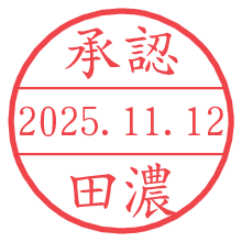 オプションの「電子透かし」をチェックし[生成]すると、見た目には分からないように、UNIXタイムスタンプを識別情報としてPNG形式の日付印に埋め込みます。 日付スタンプメーカーの使い方「部署」「名前」は最大8文字まで入力が可能です。「スタンプの色」を選択し、[生成]ボタン押下で印影画像が更新され、背景を透明に設定したPNG形式とPDF形式の印影画像がリンクからダウンロードできます。 オプションの「電子透かし」は、その性格上日付印ととても相性の良い付加サービスです。 別ページの「タイムスタンプと電子透かし」でも詳しく解説しますが、このオプションを追加することで、日付印が生成された日時に確かにその印が存在していることが証明されます。 ![]() 田濃さんの電子印鑑が作れます。社内でのデータ書類閲覧確認用など、認印的な使い方のできる電子印鑑が作れます。 ![]() 古代文字で落款印が作れます。「落款スタンプメーカー」で作品を引き立たせる落款印が作れます。