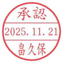 オプションの「電子透かし」をチェックし[生成]すると、見た目には分からないように、UNIXタイムスタンプを識別情報としてPNG形式の日付印に埋め込みます。 日付スタンプメーカーの使い方「部署」「名前」は最大8文字まで入力が可能です。「スタンプの色」を選択し、[生成]ボタン押下で印影画像が更新され、背景を透明に設定したPNG形式とPDF形式の印影画像がリンクからダウンロードできます。 オプションの「電子透かし」は、その性格上日付印ととても相性の良い付加サービスです。 別ページの「タイムスタンプと電子透かし」でも詳しく解説しますが、このオプションを追加することで、日付印が生成された日時に確かにその印が存在していることが証明されます。 ![]() 畠久保さんの電子印鑑が作れます。社内でのデータ書類閲覧確認用など、認印的な使い方のできる電子印鑑が作れます。 ![]() 古代文字で落款印が作れます。「落款スタンプメーカー」で作品を引き立たせる落款印が作れます。