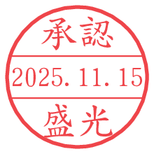 オプションの「電子透かし」をチェックし[生成]すると、見た目には分からないように、UNIXタイムスタンプを識別情報としてPNG形式の日付印に埋め込みます。 日付スタンプメーカーの使い方「部署」「名前」は最大8文字まで入力が可能です。「スタンプの色」を選択し、[生成]ボタン押下で印影画像が更新され、背景を透明に設定したPNG形式とPDF形式の印影画像がリンクからダウンロードできます。 オプションの「電子透かし」は、その性格上日付印ととても相性の良い付加サービスです。 別ページの「タイムスタンプと電子透かし」でも詳しく解説しますが、このオプションを追加することで、日付印が生成された日時に確かにその印が存在していることが証明されます。 ![]() 盛光さんの電子印鑑が作れます。社内でのデータ書類閲覧確認用など、認印的な使い方のできる電子印鑑が作れます。 ![]() 古代文字で落款印が作れます。「落款スタンプメーカー」で作品を引き立たせる落款印が作れます。
