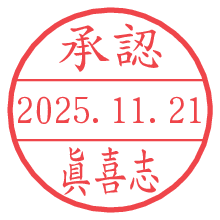 オプションの「電子透かし」をチェックし[生成]すると、見た目には分からないように、UNIXタイムスタンプを識別情報としてPNG形式の日付印に埋め込みます。 日付スタンプメーカーの使い方「部署」「名前」は最大8文字まで入力が可能です。「スタンプの色」を選択し、[生成]ボタン押下で印影画像が更新され、背景を透明に設定したPNG形式とPDF形式の印影画像がリンクからダウンロードできます。 オプションの「電子透かし」は、その性格上日付印ととても相性の良い付加サービスです。 別ページの「タイムスタンプと電子透かし」でも詳しく解説しますが、このオプションを追加することで、日付印が生成された日時に確かにその印が存在していることが証明されます。 ![]() 眞喜志さんの電子印鑑が作れます。社内でのデータ書類閲覧確認用など、認印的な使い方のできる電子印鑑が作れます。 ![]() 古代文字で落款印が作れます。「落款スタンプメーカー」で作品を引き立たせる落款印が作れます。
