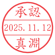 オプションの「電子透かし」をチェックし[生成]すると、見た目には分からないように、UNIXタイムスタンプを識別情報としてPNG形式の日付印に埋め込みます。 日付スタンプメーカーの使い方「部署」「名前」は最大8文字まで入力が可能です。「スタンプの色」を選択し、[生成]ボタン押下で印影画像が更新され、背景を透明に設定したPNG形式とPDF形式の印影画像がリンクからダウンロードできます。 オプションの「電子透かし」は、その性格上日付印ととても相性の良い付加サービスです。 別ページの「タイムスタンプと電子透かし」でも詳しく解説しますが、このオプションを追加することで、日付印が生成された日時に確かにその印が存在していることが証明されます。 ![]() 真淵さんの電子印鑑が作れます。社内でのデータ書類閲覧確認用など、認印的な使い方のできる電子印鑑が作れます。 ![]() 古代文字で落款印が作れます。「落款スタンプメーカー」で作品を引き立たせる落款印が作れます。