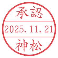 オプションの「電子透かし」をチェックし[生成]すると、見た目には分からないように、UNIXタイムスタンプを識別情報としてPNG形式の日付印に埋め込みます。 日付スタンプメーカーの使い方「部署」「名前」は最大8文字まで入力が可能です。「スタンプの色」を選択し、[生成]ボタン押下で印影画像が更新され、背景を透明に設定したPNG形式とPDF形式の印影画像がリンクからダウンロードできます。 オプションの「電子透かし」は、その性格上日付印ととても相性の良い付加サービスです。 別ページの「タイムスタンプと電子透かし」でも詳しく解説しますが、このオプションを追加することで、日付印が生成された日時に確かにその印が存在していることが証明されます。 ![]() 神松さんの電子印鑑が作れます。社内でのデータ書類閲覧確認用など、認印的な使い方のできる電子印鑑が作れます。 ![]() 古代文字で落款印が作れます。「落款スタンプメーカー」で作品を引き立たせる落款印が作れます。