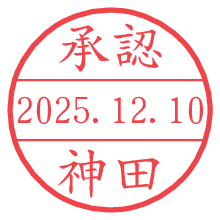 オプションの「電子透かし」をチェックし[生成]すると、見た目には分からないように、UNIXタイムスタンプを識別情報としてPNG形式の日付印に埋め込みます。 日付スタンプメーカーの使い方「部署」「名前」は最大8文字まで入力が可能です。「スタンプの色」を選択し、[生成]ボタン押下で印影画像が更新され、背景を透明に設定したPNG形式とPDF形式の印影画像がリンクからダウンロードできます。 オプションの「電子透かし」は、その性格上日付印ととても相性の良い付加サービスです。 別ページの「タイムスタンプと電子透かし」でも詳しく解説しますが、このオプションを追加することで、日付印が生成された日時に確かにその印が存在していることが証明されます。 ![]() 神田さんの電子印鑑が作れます。社内でのデータ書類閲覧確認用など、認印的な使い方のできる電子印鑑が作れます。 ![]() 古代文字で落款印が作れます。「落款スタンプメーカー」で作品を引き立たせる落款印が作れます。