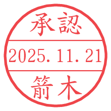 オプションの「電子透かし」をチェックし[生成]すると、見た目には分からないように、UNIXタイムスタンプを識別情報としてPNG形式の日付印に埋め込みます。 日付スタンプメーカーの使い方「部署」「名前」は最大8文字まで入力が可能です。「スタンプの色」を選択し、[生成]ボタン押下で印影画像が更新され、背景を透明に設定したPNG形式とPDF形式の印影画像がリンクからダウンロードできます。 オプションの「電子透かし」は、その性格上日付印ととても相性の良い付加サービスです。 別ページの「タイムスタンプと電子透かし」でも詳しく解説しますが、このオプションを追加することで、日付印が生成された日時に確かにその印が存在していることが証明されます。 ![]() 箭木さんの電子印鑑が作れます。社内でのデータ書類閲覧確認用など、認印的な使い方のできる電子印鑑が作れます。 ![]() 古代文字で落款印が作れます。「落款スタンプメーカー」で作品を引き立たせる落款印が作れます。