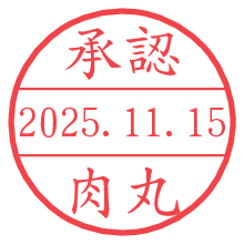 オプションの「電子透かし」をチェックし[生成]すると、見た目には分からないように、UNIXタイムスタンプを識別情報としてPNG形式の日付印に埋め込みます。 日付スタンプメーカーの使い方「部署」「名前」は最大8文字まで入力が可能です。「スタンプの色」を選択し、[生成]ボタン押下で印影画像が更新され、背景を透明に設定したPNG形式とPDF形式の印影画像がリンクからダウンロードできます。 オプションの「電子透かし」は、その性格上日付印ととても相性の良い付加サービスです。 別ページの「タイムスタンプと電子透かし」でも詳しく解説しますが、このオプションを追加することで、日付印が生成された日時に確かにその印が存在していることが証明されます。 ![]() 肉丸さんの電子印鑑が作れます。社内でのデータ書類閲覧確認用など、認印的な使い方のできる電子印鑑が作れます。 ![]() 古代文字で落款印が作れます。「落款スタンプメーカー」で作品を引き立たせる落款印が作れます。