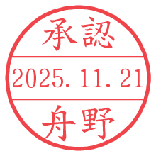 オプションの「電子透かし」をチェックし[生成]すると、見た目には分からないように、UNIXタイムスタンプを識別情報としてPNG形式の日付印に埋め込みます。 日付スタンプメーカーの使い方「部署」「名前」は最大8文字まで入力が可能です。「スタンプの色」を選択し、[生成]ボタン押下で印影画像が更新され、背景を透明に設定したPNG形式とPDF形式の印影画像がリンクからダウンロードできます。 オプションの「電子透かし」は、その性格上日付印ととても相性の良い付加サービスです。 別ページの「タイムスタンプと電子透かし」でも詳しく解説しますが、このオプションを追加することで、日付印が生成された日時に確かにその印が存在していることが証明されます。 ![]() 舟野さんの電子印鑑が作れます。社内でのデータ書類閲覧確認用など、認印的な使い方のできる電子印鑑が作れます。 ![]() 古代文字で落款印が作れます。「落款スタンプメーカー」で作品を引き立たせる落款印が作れます。