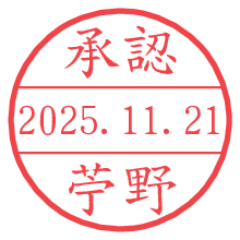 オプションの「電子透かし」をチェックし[生成]すると、見た目には分からないように、UNIXタイムスタンプを識別情報としてPNG形式の日付印に埋め込みます。 日付スタンプメーカーの使い方「部署」「名前」は最大8文字まで入力が可能です。「スタンプの色」を選択し、[生成]ボタン押下で印影画像が更新され、背景を透明に設定したPNG形式とPDF形式の印影画像がリンクからダウンロードできます。 オプションの「電子透かし」は、その性格上日付印ととても相性の良い付加サービスです。 別ページの「タイムスタンプと電子透かし」でも詳しく解説しますが、このオプションを追加することで、日付印が生成された日時に確かにその印が存在していることが証明されます。 ![]() 苧野さんの電子印鑑が作れます。社内でのデータ書類閲覧確認用など、認印的な使い方のできる電子印鑑が作れます。 ![]() 古代文字で落款印が作れます。「落款スタンプメーカー」で作品を引き立たせる落款印が作れます。