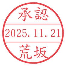 オプションの「電子透かし」をチェックし[生成]すると、見た目には分からないように、UNIXタイムスタンプを識別情報としてPNG形式の日付印に埋め込みます。 日付スタンプメーカーの使い方「部署」「名前」は最大8文字まで入力が可能です。「スタンプの色」を選択し、[生成]ボタン押下で印影画像が更新され、背景を透明に設定したPNG形式とPDF形式の印影画像がリンクからダウンロードできます。 オプションの「電子透かし」は、その性格上日付印ととても相性の良い付加サービスです。 別ページの「タイムスタンプと電子透かし」でも詳しく解説しますが、このオプションを追加することで、日付印が生成された日時に確かにその印が存在していることが証明されます。 ![]() 荒坂さんの電子印鑑が作れます。社内でのデータ書類閲覧確認用など、認印的な使い方のできる電子印鑑が作れます。 ![]() 古代文字で落款印が作れます。「落款スタンプメーカー」で作品を引き立たせる落款印が作れます。