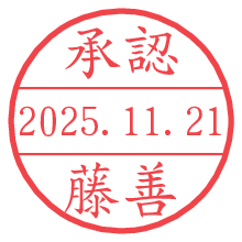 オプションの「電子透かし」をチェックし[生成]すると、見た目には分からないように、UNIXタイムスタンプを識別情報としてPNG形式の日付印に埋め込みます。 日付スタンプメーカーの使い方「部署」「名前」は最大8文字まで入力が可能です。「スタンプの色」を選択し、[生成]ボタン押下で印影画像が更新され、背景を透明に設定したPNG形式とPDF形式の印影画像がリンクからダウンロードできます。 オプションの「電子透かし」は、その性格上日付印ととても相性の良い付加サービスです。 別ページの「タイムスタンプと電子透かし」でも詳しく解説しますが、このオプションを追加することで、日付印が生成された日時に確かにその印が存在していることが証明されます。 ![]() 藤善さんの電子印鑑が作れます。社内でのデータ書類閲覧確認用など、認印的な使い方のできる電子印鑑が作れます。 ![]() 古代文字で落款印が作れます。「落款スタンプメーカー」で作品を引き立たせる落款印が作れます。