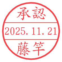 オプションの「電子透かし」をチェックし[生成]すると、見た目には分からないように、UNIXタイムスタンプを識別情報としてPNG形式の日付印に埋め込みます。 日付スタンプメーカーの使い方「部署」「名前」は最大8文字まで入力が可能です。「スタンプの色」を選択し、[生成]ボタン押下で印影画像が更新され、背景を透明に設定したPNG形式とPDF形式の印影画像がリンクからダウンロードできます。 オプションの「電子透かし」は、その性格上日付印ととても相性の良い付加サービスです。 別ページの「タイムスタンプと電子透かし」でも詳しく解説しますが、このオプションを追加することで、日付印が生成された日時に確かにその印が存在していることが証明されます。 ![]() 藤竿さんの電子印鑑が作れます。社内でのデータ書類閲覧確認用など、認印的な使い方のできる電子印鑑が作れます。 ![]() 古代文字で落款印が作れます。「落款スタンプメーカー」で作品を引き立たせる落款印が作れます。