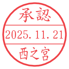 オプションの「電子透かし」をチェックし[生成]すると、見た目には分からないように、UNIXタイムスタンプを識別情報としてPNG形式の日付印に埋め込みます。 日付スタンプメーカーの使い方「部署」「名前」は最大8文字まで入力が可能です。「スタンプの色」を選択し、[生成]ボタン押下で印影画像が更新され、背景を透明に設定したPNG形式とPDF形式の印影画像がリンクからダウンロードできます。 オプションの「電子透かし」は、その性格上日付印ととても相性の良い付加サービスです。 別ページの「タイムスタンプと電子透かし」でも詳しく解説しますが、このオプションを追加することで、日付印が生成された日時に確かにその印が存在していることが証明されます。 ![]() 西之宮さんの電子印鑑が作れます。社内でのデータ書類閲覧確認用など、認印的な使い方のできる電子印鑑が作れます。 ![]() 古代文字で落款印が作れます。「落款スタンプメーカー」で作品を引き立たせる落款印が作れます。