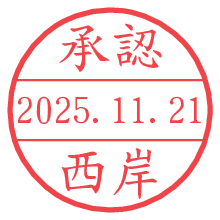 オプションの「電子透かし」をチェックし[生成]すると、見た目には分からないように、UNIXタイムスタンプを識別情報としてPNG形式の日付印に埋め込みます。 日付スタンプメーカーの使い方「部署」「名前」は最大8文字まで入力が可能です。「スタンプの色」を選択し、[生成]ボタン押下で印影画像が更新され、背景を透明に設定したPNG形式とPDF形式の印影画像がリンクからダウンロードできます。 オプションの「電子透かし」は、その性格上日付印ととても相性の良い付加サービスです。 別ページの「タイムスタンプと電子透かし」でも詳しく解説しますが、このオプションを追加することで、日付印が生成された日時に確かにその印が存在していることが証明されます。 ![]() 西岸さんの電子印鑑が作れます。社内でのデータ書類閲覧確認用など、認印的な使い方のできる電子印鑑が作れます。 ![]() 古代文字で落款印が作れます。「落款スタンプメーカー」で作品を引き立たせる落款印が作れます。
