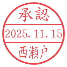 オプションの「電子透かし」をチェックし[生成]すると、見た目には分からないように、UNIXタイムスタンプを識別情報としてPNG形式の日付印に埋め込みます。 日付スタンプメーカーの使い方「部署」「名前」は最大8文字まで入力が可能です。「スタンプの色」を選択し、[生成]ボタン押下で印影画像が更新され、背景を透明に設定したPNG形式とPDF形式の印影画像がリンクからダウンロードできます。 オプションの「電子透かし」は、その性格上日付印ととても相性の良い付加サービスです。 別ページの「タイムスタンプと電子透かし」でも詳しく解説しますが、このオプションを追加することで、日付印が生成された日時に確かにその印が存在していることが証明されます。 ![]() 西瀬戸さんの電子印鑑が作れます。社内でのデータ書類閲覧確認用など、認印的な使い方のできる電子印鑑が作れます。 ![]() 古代文字で落款印が作れます。「落款スタンプメーカー」で作品を引き立たせる落款印が作れます。