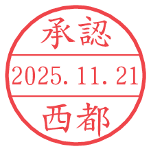オプションの「電子透かし」をチェックし[生成]すると、見た目には分からないように、UNIXタイムスタンプを識別情報としてPNG形式の日付印に埋め込みます。 日付スタンプメーカーの使い方「部署」「名前」は最大8文字まで入力が可能です。「スタンプの色」を選択し、[生成]ボタン押下で印影画像が更新され、背景を透明に設定したPNG形式とPDF形式の印影画像がリンクからダウンロードできます。 オプションの「電子透かし」は、その性格上日付印ととても相性の良い付加サービスです。 別ページの「タイムスタンプと電子透かし」でも詳しく解説しますが、このオプションを追加することで、日付印が生成された日時に確かにその印が存在していることが証明されます。 ![]() 西都さんの電子印鑑が作れます。社内でのデータ書類閲覧確認用など、認印的な使い方のできる電子印鑑が作れます。 ![]() 古代文字で落款印が作れます。「落款スタンプメーカー」で作品を引き立たせる落款印が作れます。