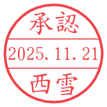 オプションの「電子透かし」をチェックし[生成]すると、見た目には分からないように、UNIXタイムスタンプを識別情報としてPNG形式の日付印に埋め込みます。 日付スタンプメーカーの使い方「部署」「名前」は最大8文字まで入力が可能です。「スタンプの色」を選択し、[生成]ボタン押下で印影画像が更新され、背景を透明に設定したPNG形式とPDF形式の印影画像がリンクからダウンロードできます。 オプションの「電子透かし」は、その性格上日付印ととても相性の良い付加サービスです。 別ページの「タイムスタンプと電子透かし」でも詳しく解説しますが、このオプションを追加することで、日付印が生成された日時に確かにその印が存在していることが証明されます。 ![]() 西雪さんの電子印鑑が作れます。社内でのデータ書類閲覧確認用など、認印的な使い方のできる電子印鑑が作れます。 ![]() 古代文字で落款印が作れます。「落款スタンプメーカー」で作品を引き立たせる落款印が作れます。