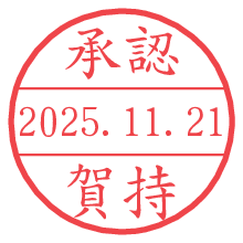 オプションの「電子透かし」をチェックし[生成]すると、見た目には分からないように、UNIXタイムスタンプを識別情報としてPNG形式の日付印に埋め込みます。 日付スタンプメーカーの使い方「部署」「名前」は最大8文字まで入力が可能です。「スタンプの色」を選択し、[生成]ボタン押下で印影画像が更新され、背景を透明に設定したPNG形式とPDF形式の印影画像がリンクからダウンロードできます。 オプションの「電子透かし」は、その性格上日付印ととても相性の良い付加サービスです。 別ページの「タイムスタンプと電子透かし」でも詳しく解説しますが、このオプションを追加することで、日付印が生成された日時に確かにその印が存在していることが証明されます。 ![]() 賀持さんの電子印鑑が作れます。社内でのデータ書類閲覧確認用など、認印的な使い方のできる電子印鑑が作れます。 ![]() 古代文字で落款印が作れます。「落款スタンプメーカー」で作品を引き立たせる落款印が作れます。