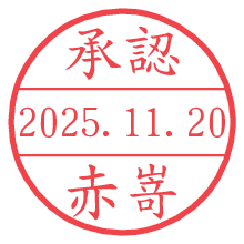 オプションの「電子透かし」をチェックし[生成]すると、見た目には分からないように、UNIXタイムスタンプを識別情報としてPNG形式の日付印に埋め込みます。 日付スタンプメーカーの使い方「部署」「名前」は最大8文字まで入力が可能です。「スタンプの色」を選択し、[生成]ボタン押下で印影画像が更新され、背景を透明に設定したPNG形式とPDF形式の印影画像がリンクからダウンロードできます。 オプションの「電子透かし」は、その性格上日付印ととても相性の良い付加サービスです。 別ページの「タイムスタンプと電子透かし」でも詳しく解説しますが、このオプションを追加することで、日付印が生成された日時に確かにその印が存在していることが証明されます。 ![]() 赤嵜さんの電子印鑑が作れます。社内でのデータ書類閲覧確認用など、認印的な使い方のできる電子印鑑が作れます。 ![]() 古代文字で落款印が作れます。「落款スタンプメーカー」で作品を引き立たせる落款印が作れます。