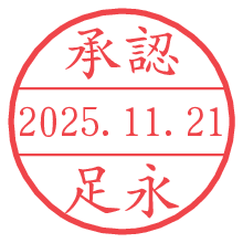 オプションの「電子透かし」をチェックし[生成]すると、見た目には分からないように、UNIXタイムスタンプを識別情報としてPNG形式の日付印に埋め込みます。 日付スタンプメーカーの使い方「部署」「名前」は最大8文字まで入力が可能です。「スタンプの色」を選択し、[生成]ボタン押下で印影画像が更新され、背景を透明に設定したPNG形式とPDF形式の印影画像がリンクからダウンロードできます。 オプションの「電子透かし」は、その性格上日付印ととても相性の良い付加サービスです。 別ページの「タイムスタンプと電子透かし」でも詳しく解説しますが、このオプションを追加することで、日付印が生成された日時に確かにその印が存在していることが証明されます。 ![]() 足永さんの電子印鑑が作れます。社内でのデータ書類閲覧確認用など、認印的な使い方のできる電子印鑑が作れます。 ![]() 古代文字で落款印が作れます。「落款スタンプメーカー」で作品を引き立たせる落款印が作れます。