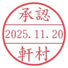 オプションの「電子透かし」をチェックし[生成]すると、見た目には分からないように、UNIXタイムスタンプを識別情報としてPNG形式の日付印に埋め込みます。 日付スタンプメーカーの使い方「部署」「名前」は最大8文字まで入力が可能です。「スタンプの色」を選択し、[生成]ボタン押下で印影画像が更新され、背景を透明に設定したPNG形式とPDF形式の印影画像がリンクからダウンロードできます。 オプションの「電子透かし」は、その性格上日付印ととても相性の良い付加サービスです。 別ページの「タイムスタンプと電子透かし」でも詳しく解説しますが、このオプションを追加することで、日付印が生成された日時に確かにその印が存在していることが証明されます。 ![]() 軒村さんの電子印鑑が作れます。社内でのデータ書類閲覧確認用など、認印的な使い方のできる電子印鑑が作れます。 ![]() 古代文字で落款印が作れます。「落款スタンプメーカー」で作品を引き立たせる落款印が作れます。