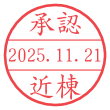 オプションの「電子透かし」をチェックし[生成]すると、見た目には分からないように、UNIXタイムスタンプを識別情報としてPNG形式の日付印に埋め込みます。 日付スタンプメーカーの使い方「部署」「名前」は最大8文字まで入力が可能です。「スタンプの色」を選択し、[生成]ボタン押下で印影画像が更新され、背景を透明に設定したPNG形式とPDF形式の印影画像がリンクからダウンロードできます。 オプションの「電子透かし」は、その性格上日付印ととても相性の良い付加サービスです。 別ページの「タイムスタンプと電子透かし」でも詳しく解説しますが、このオプションを追加することで、日付印が生成された日時に確かにその印が存在していることが証明されます。 ![]() 近棟さんの電子印鑑が作れます。社内でのデータ書類閲覧確認用など、認印的な使い方のできる電子印鑑が作れます。 ![]() 古代文字で落款印が作れます。「落款スタンプメーカー」で作品を引き立たせる落款印が作れます。