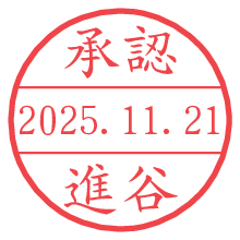 オプションの「電子透かし」をチェックし[生成]すると、見た目には分からないように、UNIXタイムスタンプを識別情報としてPNG形式の日付印に埋め込みます。 日付スタンプメーカーの使い方「部署」「名前」は最大8文字まで入力が可能です。「スタンプの色」を選択し、[生成]ボタン押下で印影画像が更新され、背景を透明に設定したPNG形式とPDF形式の印影画像がリンクからダウンロードできます。 オプションの「電子透かし」は、その性格上日付印ととても相性の良い付加サービスです。 別ページの「タイムスタンプと電子透かし」でも詳しく解説しますが、このオプションを追加することで、日付印が生成された日時に確かにその印が存在していることが証明されます。 ![]() 進谷さんの電子印鑑が作れます。社内でのデータ書類閲覧確認用など、認印的な使い方のできる電子印鑑が作れます。 ![]() 古代文字で落款印が作れます。「落款スタンプメーカー」で作品を引き立たせる落款印が作れます。