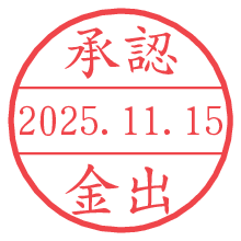 オプションの「電子透かし」をチェックし[生成]すると、見た目には分からないように、UNIXタイムスタンプを識別情報としてPNG形式の日付印に埋め込みます。 日付スタンプメーカーの使い方「部署」「名前」は最大8文字まで入力が可能です。「スタンプの色」を選択し、[生成]ボタン押下で印影画像が更新され、背景を透明に設定したPNG形式とPDF形式の印影画像がリンクからダウンロードできます。 オプションの「電子透かし」は、その性格上日付印ととても相性の良い付加サービスです。 別ページの「タイムスタンプと電子透かし」でも詳しく解説しますが、このオプションを追加することで、日付印が生成された日時に確かにその印が存在していることが証明されます。 ![]() 金出さんの電子印鑑が作れます。社内でのデータ書類閲覧確認用など、認印的な使い方のできる電子印鑑が作れます。 ![]() 古代文字で落款印が作れます。「落款スタンプメーカー」で作品を引き立たせる落款印が作れます。