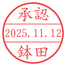 オプションの「電子透かし」をチェックし[生成]すると、見た目には分からないように、UNIXタイムスタンプを識別情報としてPNG形式の日付印に埋め込みます。 日付スタンプメーカーの使い方「部署」「名前」は最大8文字まで入力が可能です。「スタンプの色」を選択し、[生成]ボタン押下で印影画像が更新され、背景を透明に設定したPNG形式とPDF形式の印影画像がリンクからダウンロードできます。 オプションの「電子透かし」は、その性格上日付印ととても相性の良い付加サービスです。 別ページの「タイムスタンプと電子透かし」でも詳しく解説しますが、このオプションを追加することで、日付印が生成された日時に確かにその印が存在していることが証明されます。 ![]() 鉢田さんの電子印鑑が作れます。社内でのデータ書類閲覧確認用など、認印的な使い方のできる電子印鑑が作れます。 ![]() 古代文字で落款印が作れます。「落款スタンプメーカー」で作品を引き立たせる落款印が作れます。