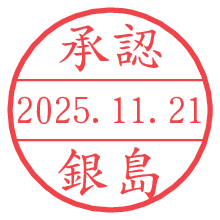 オプションの「電子透かし」をチェックし[生成]すると、見た目には分からないように、UNIXタイムスタンプを識別情報としてPNG形式の日付印に埋め込みます。 日付スタンプメーカーの使い方「部署」「名前」は最大8文字まで入力が可能です。「スタンプの色」を選択し、[生成]ボタン押下で印影画像が更新され、背景を透明に設定したPNG形式とPDF形式の印影画像がリンクからダウンロードできます。 オプションの「電子透かし」は、その性格上日付印ととても相性の良い付加サービスです。 別ページの「タイムスタンプと電子透かし」でも詳しく解説しますが、このオプションを追加することで、日付印が生成された日時に確かにその印が存在していることが証明されます。 ![]() 銀島さんの電子印鑑が作れます。社内でのデータ書類閲覧確認用など、認印的な使い方のできる電子印鑑が作れます。 ![]() 古代文字で落款印が作れます。「落款スタンプメーカー」で作品を引き立たせる落款印が作れます。
