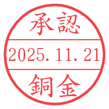 オプションの「電子透かし」をチェックし[生成]すると、見た目には分からないように、UNIXタイムスタンプを識別情報としてPNG形式の日付印に埋め込みます。 日付スタンプメーカーの使い方「部署」「名前」は最大8文字まで入力が可能です。「スタンプの色」を選択し、[生成]ボタン押下で印影画像が更新され、背景を透明に設定したPNG形式とPDF形式の印影画像がリンクからダウンロードできます。 オプションの「電子透かし」は、その性格上日付印ととても相性の良い付加サービスです。 別ページの「タイムスタンプと電子透かし」でも詳しく解説しますが、このオプションを追加することで、日付印が生成された日時に確かにその印が存在していることが証明されます。 ![]() 銅金さんの電子印鑑が作れます。社内でのデータ書類閲覧確認用など、認印的な使い方のできる電子印鑑が作れます。 ![]() 古代文字で落款印が作れます。「落款スタンプメーカー」で作品を引き立たせる落款印が作れます。