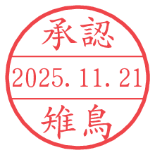 オプションの「電子透かし」をチェックし[生成]すると、見た目には分からないように、UNIXタイムスタンプを識別情報としてPNG形式の日付印に埋め込みます。 日付スタンプメーカーの使い方「部署」「名前」は最大8文字まで入力が可能です。「スタンプの色」を選択し、[生成]ボタン押下で印影画像が更新され、背景を透明に設定したPNG形式とPDF形式の印影画像がリンクからダウンロードできます。 オプションの「電子透かし」は、その性格上日付印ととても相性の良い付加サービスです。 別ページの「タイムスタンプと電子透かし」でも詳しく解説しますが、このオプションを追加することで、日付印が生成された日時に確かにその印が存在していることが証明されます。 ![]() 雉鳥さんの電子印鑑が作れます。社内でのデータ書類閲覧確認用など、認印的な使い方のできる電子印鑑が作れます。 ![]() 古代文字で落款印が作れます。「落款スタンプメーカー」で作品を引き立たせる落款印が作れます。