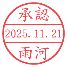 オプションの「電子透かし」をチェックし[生成]すると、見た目には分からないように、UNIXタイムスタンプを識別情報としてPNG形式の日付印に埋め込みます。 日付スタンプメーカーの使い方「部署」「名前」は最大8文字まで入力が可能です。「スタンプの色」を選択し、[生成]ボタン押下で印影画像が更新され、背景を透明に設定したPNG形式とPDF形式の印影画像がリンクからダウンロードできます。 オプションの「電子透かし」は、その性格上日付印ととても相性の良い付加サービスです。 別ページの「タイムスタンプと電子透かし」でも詳しく解説しますが、このオプションを追加することで、日付印が生成された日時に確かにその印が存在していることが証明されます。 ![]() 雨河さんの電子印鑑が作れます。社内でのデータ書類閲覧確認用など、認印的な使い方のできる電子印鑑が作れます。 ![]() 古代文字で落款印が作れます。「落款スタンプメーカー」で作品を引き立たせる落款印が作れます。