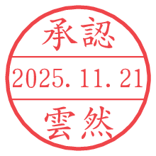 オプションの「電子透かし」をチェックし[生成]すると、見た目には分からないように、UNIXタイムスタンプを識別情報としてPNG形式の日付印に埋め込みます。 日付スタンプメーカーの使い方「部署」「名前」は最大8文字まで入力が可能です。「スタンプの色」を選択し、[生成]ボタン押下で印影画像が更新され、背景を透明に設定したPNG形式とPDF形式の印影画像がリンクからダウンロードできます。 オプションの「電子透かし」は、その性格上日付印ととても相性の良い付加サービスです。 別ページの「タイムスタンプと電子透かし」でも詳しく解説しますが、このオプションを追加することで、日付印が生成された日時に確かにその印が存在していることが証明されます。 ![]() 雲然さんの電子印鑑が作れます。社内でのデータ書類閲覧確認用など、認印的な使い方のできる電子印鑑が作れます。 ![]() 古代文字で落款印が作れます。「落款スタンプメーカー」で作品を引き立たせる落款印が作れます。
