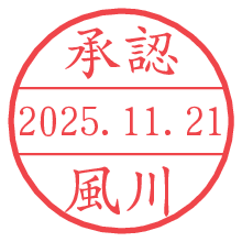 オプションの「電子透かし」をチェックし[生成]すると、見た目には分からないように、UNIXタイムスタンプを識別情報としてPNG形式の日付印に埋め込みます。 日付スタンプメーカーの使い方「部署」「名前」は最大8文字まで入力が可能です。「スタンプの色」を選択し、[生成]ボタン押下で印影画像が更新され、背景を透明に設定したPNG形式とPDF形式の印影画像がリンクからダウンロードできます。 オプションの「電子透かし」は、その性格上日付印ととても相性の良い付加サービスです。 別ページの「タイムスタンプと電子透かし」でも詳しく解説しますが、このオプションを追加することで、日付印が生成された日時に確かにその印が存在していることが証明されます。 ![]() 風川さんの電子印鑑が作れます。社内でのデータ書類閲覧確認用など、認印的な使い方のできる電子印鑑が作れます。 ![]() 古代文字で落款印が作れます。「落款スタンプメーカー」で作品を引き立たせる落款印が作れます。