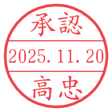 オプションの「電子透かし」をチェックし[生成]すると、見た目には分からないように、UNIXタイムスタンプを識別情報としてPNG形式の日付印に埋め込みます。 日付スタンプメーカーの使い方「部署」「名前」は最大8文字まで入力が可能です。「スタンプの色」を選択し、[生成]ボタン押下で印影画像が更新され、背景を透明に設定したPNG形式とPDF形式の印影画像がリンクからダウンロードできます。 オプションの「電子透かし」は、その性格上日付印ととても相性の良い付加サービスです。 別ページの「タイムスタンプと電子透かし」でも詳しく解説しますが、このオプションを追加することで、日付印が生成された日時に確かにその印が存在していることが証明されます。 ![]() 高忠さんの電子印鑑が作れます。社内でのデータ書類閲覧確認用など、認印的な使い方のできる電子印鑑が作れます。 ![]() 古代文字で落款印が作れます。「落款スタンプメーカー」で作品を引き立たせる落款印が作れます。