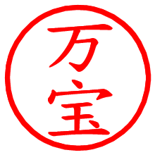 [朱肉の色]を選び、入力窓に“万宝”と入力して[生成]ボタンを押すと、印影が更新され、リンクから電子印鑑(デジタル印影)がダウンロードできます。 電子印鑑「万宝」の作り方文字表示が変なときや、文字バランスが悪いときは[字形切替]のチェックボックスでON/OFFを切り替え[生成]しなおしてください。 生成される画像は通常の印影「万宝.png」と、にじみを表現した少し太めの印影「万宝B.png」の背面透過PNG形式2種と、鮮明なPDF形式の印影「万宝.pdf」の計3種類です。 朱肉の微妙な色の違いを7色で表現しました。デフォルト(左端)は、JISが定めた朱肉の色のマンセル値(7.5R 5/14)をRGB値(217,66,54)に変換したものになっています。 「電子透かし」にチェックを入れて[生成]ボタンを押すと、タイムスタンプを電子透かしとして埋め込んだセキュアな電子印鑑が作れます。詳細は別ページの「タイムスタンプと電子透かし」でご覧ください。 万宝さんの日付印が作れます。「日付スタンプメーカー」は、社内向けの書類に利用されることの多い日付印(データ印)が無料で作れるWebアプリケーションです。中段に日付が入り、上段と下段は、ともに8文字まで文字が入ります。 ![]() 古代文字で落款印が作れます。「落款スタンプメーカー」で作品を引き立たせる落款印が作れます。