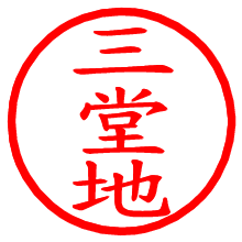 [朱肉の色]を選び、入力窓に“三堂地”と入力して[生成]ボタンを押すと、印影が更新され、リンクから電子印鑑(デジタル印影)がダウンロードできます。 電子印鑑「三堂地」の作り方文字表示が変なときや、文字バランスが悪いときは[字形切替]のチェックボックスでON/OFFを切り替え[生成]しなおしてください。 生成される画像は通常の印影「三堂地.png」と、にじみを表現した少し太めの印影「三堂地B.png」の背面透過PNG形式2種と、鮮明なPDF形式の印影「三堂地.pdf」の計3種類です。 朱肉の微妙な色の違いを7色で表現しました。デフォルト(左端)は、JISが定めた朱肉の色のマンセル値(7.5R 5/14)をRGB値(217,66,54)に変換したものになっています。 「電子透かし」にチェックを入れて[生成]ボタンを押すと、タイムスタンプを電子透かしとして埋め込んだセキュアな電子印鑑が作れます。詳細は別ページの「タイムスタンプと電子透かし」でご覧ください。 三堂地さんの日付印が作れます。「日付スタンプメーカー」は、社内向けの書類に利用されることの多い日付印(データ印)が無料で作れるWebアプリケーションです。中段に日付が入り、上段と下段は、ともに8文字まで文字が入ります。 ![]() 古代文字で落款印が作れます。「落款スタンプメーカー」で作品を引き立たせる落款印が作れます。