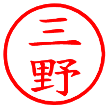 [朱肉の色]を選び、入力窓に“三野”と入力して[生成]ボタンを押すと、印影が更新され、リンクから電子印鑑(デジタル印影)がダウンロードできます。 電子印鑑「三野」の作り方文字表示が変なときや、文字バランスが悪いときは[字形切替]のチェックボックスでON/OFFを切り替え[生成]しなおしてください。 生成される画像は通常の印影「三野.png」と、にじみを表現した少し太めの印影「三野B.png」の背面透過PNG形式2種と、鮮明なPDF形式の印影「三野.pdf」の計3種類です。 朱肉の微妙な色の違いを7色で表現しました。デフォルト(左端)は、JISが定めた朱肉の色のマンセル値(7.5R 5/14)をRGB値(217,66,54)に変換したものになっています。 「電子透かし」にチェックを入れて[生成]ボタンを押すと、タイムスタンプを透かしとして埋め込んだセキュアな電子印鑑が作れます。詳細は別ページの「電子透かしとタイムスタンプ」でご覧ください。 三野さんの日付印が作れます。「日付スタンプメーカー」は、社内向けの書類に利用されることの多い日付印(データ印)が無料で作れるWebアプリケーションです。中段に日付が入り、上段と下段は、ともに8文字まで文字が入ります。 ![]() 古代文字で落款印が作れます。「落款スタンプメーカー」で作品を引き立たせる落款印が作れます。