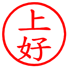 [朱肉の色]を選び、入力窓に“上好”と入力して[生成]ボタンを押すと、印影が更新され、リンクから電子印鑑(デジタル印影)がダウンロードできます。 電子印鑑「上好」の作り方文字表示が変なときや、文字バランスが悪いときは[字形切替]のチェックボックスでON/OFFを切り替え[生成]しなおしてください。 生成される画像は通常の印影「上好.png」と、にじみを表現した少し太めの印影「上好B.png」の背面透過PNG形式2種と、鮮明なPDF形式の印影「上好.pdf」の計3種類です。 朱肉の微妙な色の違いを7色で表現しました。デフォルト(左端)は、JISが定めた朱肉の色のマンセル値(7.5R 5/14)をRGB値(217,66,54)に変換したものになっています。 「電子透かし」にチェックを入れて[生成]ボタンを押すと、タイムスタンプを電子透かしとして埋め込んだセキュアな電子印鑑が作れます。詳細は別ページの「タイムスタンプと電子透かし」でご覧ください。 上好さんの日付印が作れます。「日付スタンプメーカー」は、社内向けの書類に利用されることの多い日付印(データ印)が無料で作れるWebアプリケーションです。中段に日付が入り、上段と下段は、ともに8文字まで文字が入ります。 ![]() 古代文字で落款印が作れます。「落款スタンプメーカー」で作品を引き立たせる落款印が作れます。